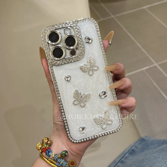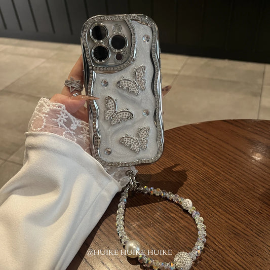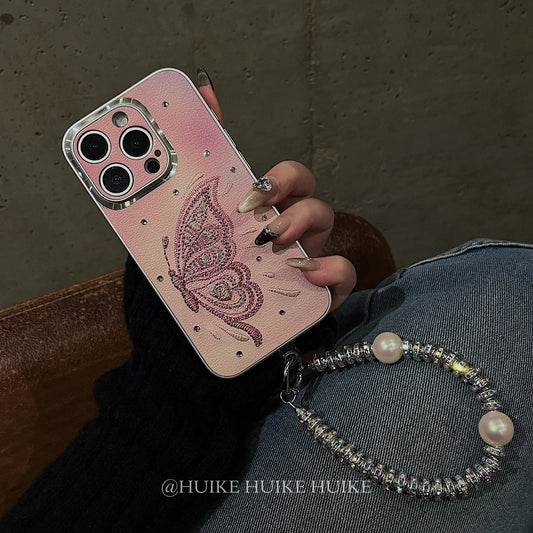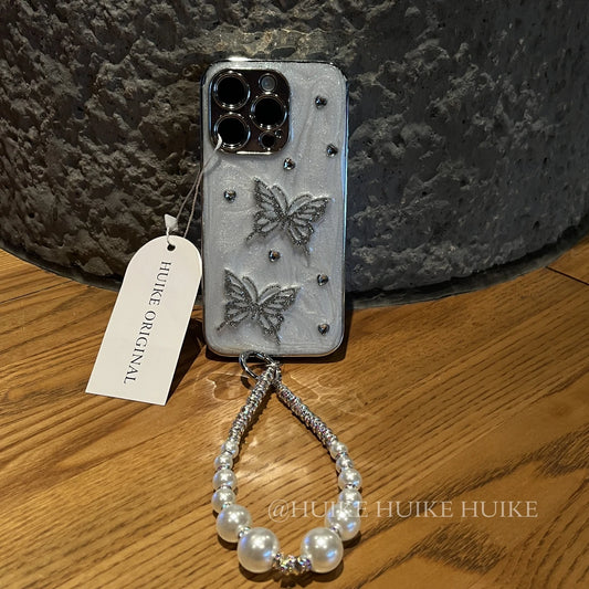 Handmade Diamond Inlaid Butterfly Phone Case with Phone Charm Strap