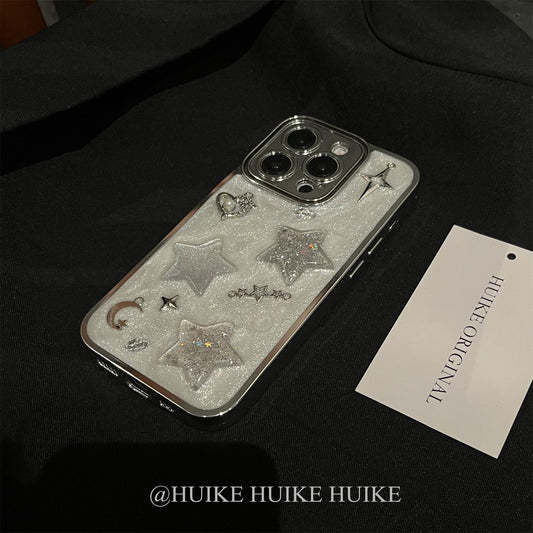 HANDMADE SILVER SHIMMERING STARS Phone Case with Phone Charm Strap