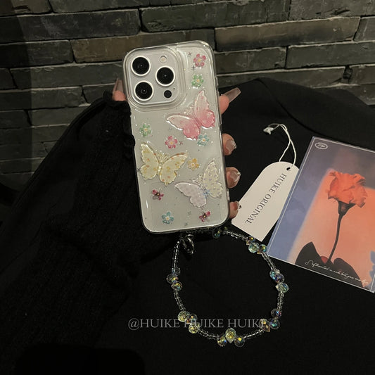 HANDMADE COLORFUL BUTTERFLY Transparent Phone Case with Phone Charm Strap