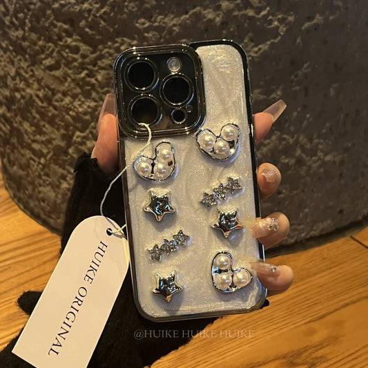 HANDMADE WHITE LOVE HEART STAR Phone Case with Phone Charm Strap