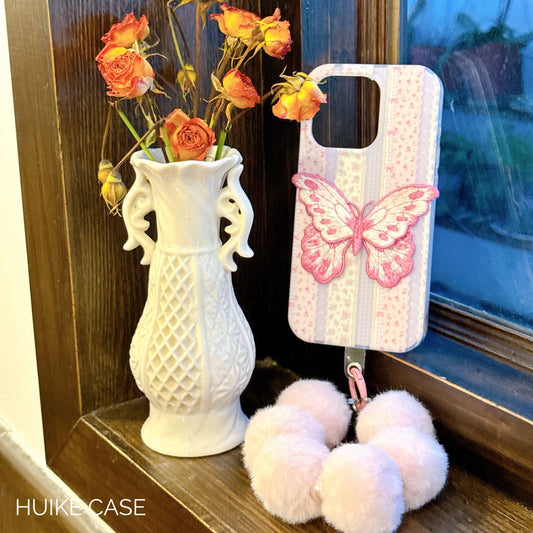 HANDMADE PINK EMBROIDERED Butterfly Phone Case with Phone Charm Strap
