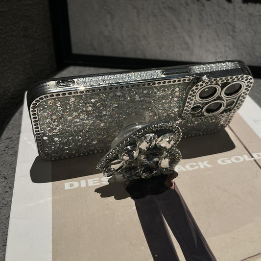 RHINESTONE HEART SHAPED Bracket Phone Case with Phone Charm Strap