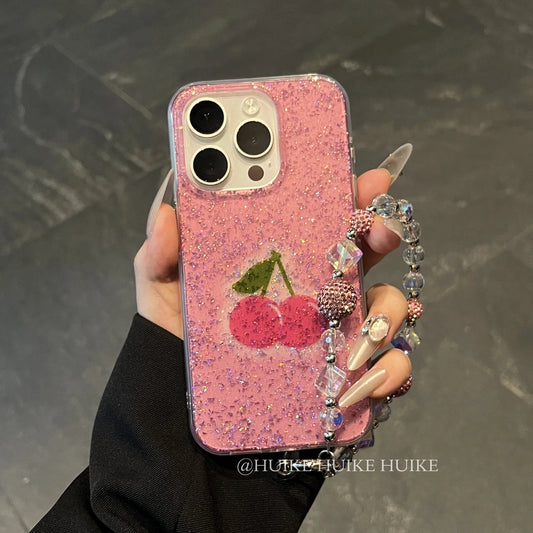 PINK CHERRY lightweight phone case with Phone Charm Strap