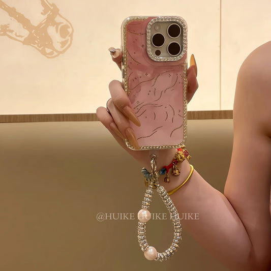SUMMER Personalized Pleated Mirror phone case with Phone Charm Strap,Compatible for iphone 17
