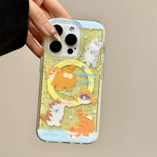 CUTE YELLOW CAT Magnetic Phone Case[Compatible with Magsafe]with Magnetic Bracket, Compatible for Samsung & iPhone