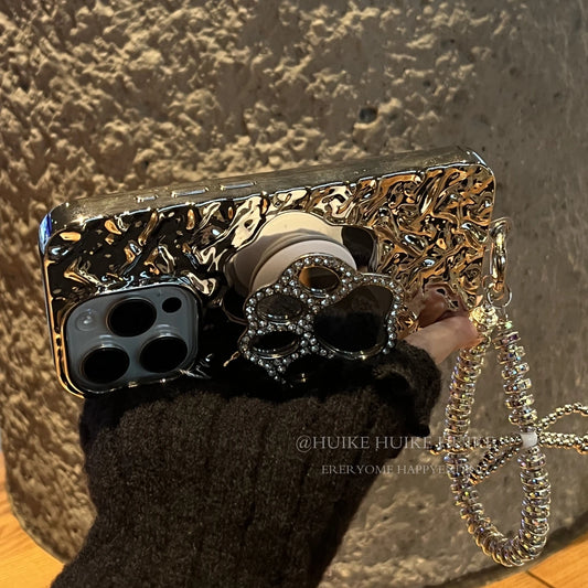 ELECTROPLATED SILVER Cat Paw Bracket Phone Case with Phone Charm Strap