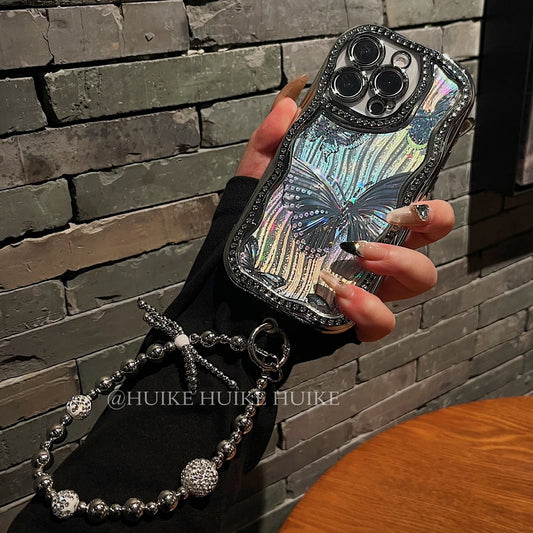 AURORA BUTTERFLY Sparkling Diamond Shining Glitter Phone Case with Phone Charm Strap