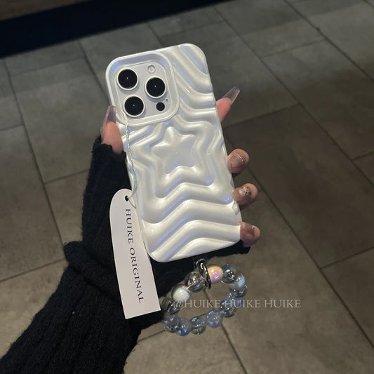 PEARL WHITE Pentagram Phone Case with Phone Charm Strap