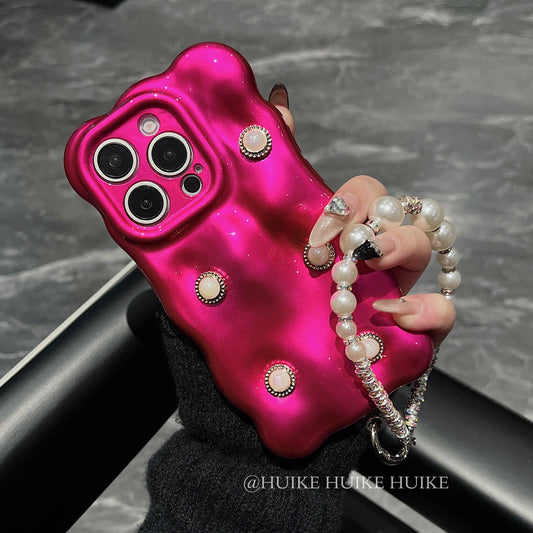 RHINESTONE BUTTERFLY Pearly Transparent Phone Case with Phone Charm Strap