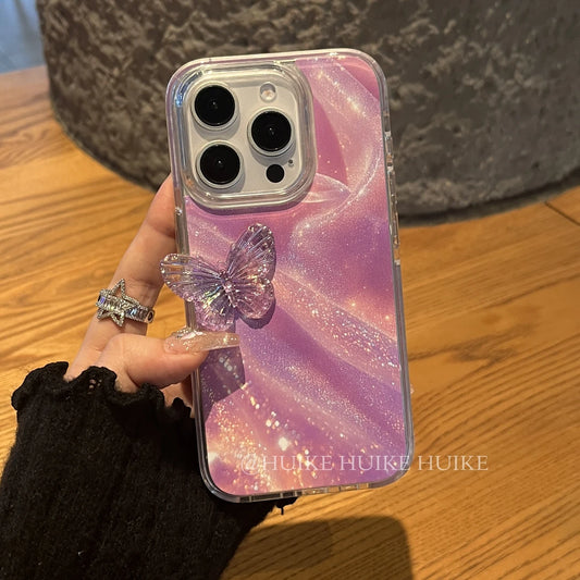 PURPLE TRANSPARTENT BUTTERFLY Phone Case with Phone Charm Strap