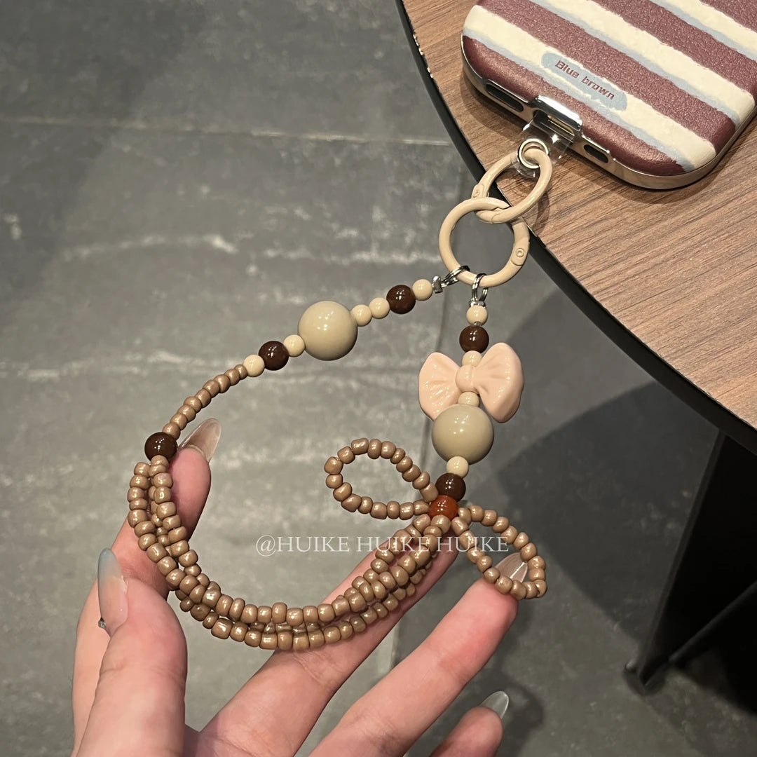 Blue Brown Stripe Phone Case with Phone Charm Strap,Compatible for iphone 17