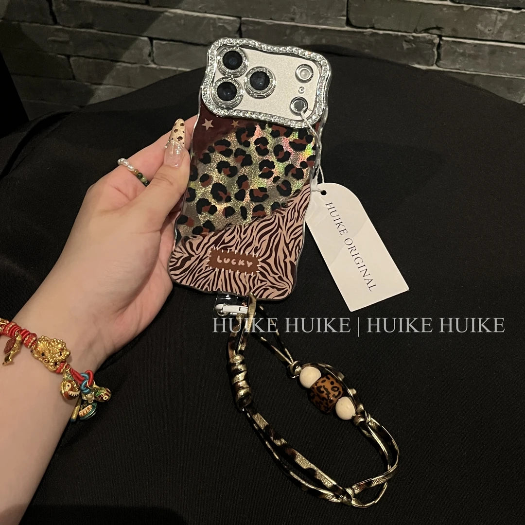 Leopard Zebra Star Combination Phone Case with Phone Charm Strap,Compatible for iphone 17