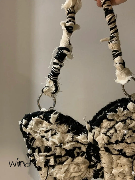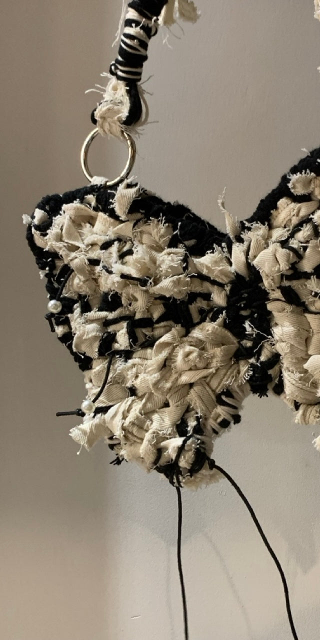 Blackwhite Butterfly丨Handmade Mixed-woven Denim Armpit Bag, Small Size