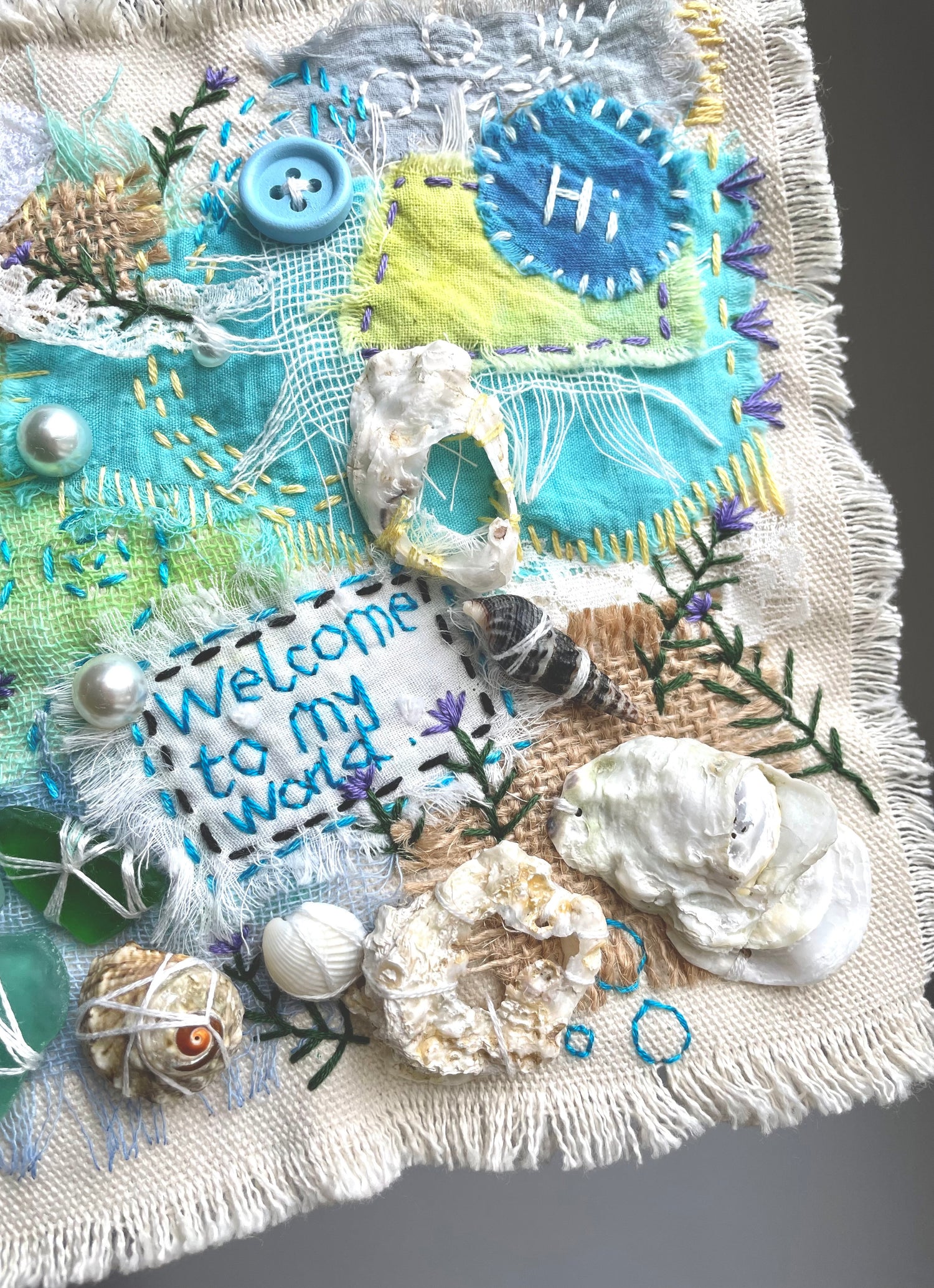 Blue Ocean 丨Patchwork Hanging Picture, Fabric Art Collage