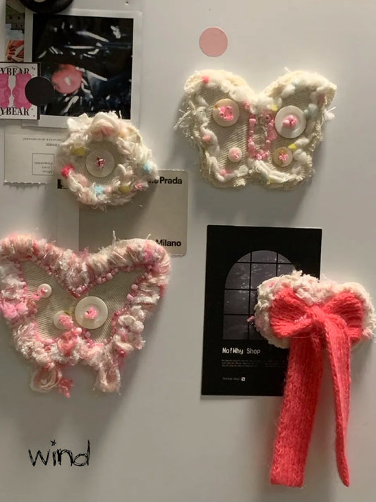 Pinkwhite butterfly丨Handmade Denim Refrigerator Stickers, Pack of 4