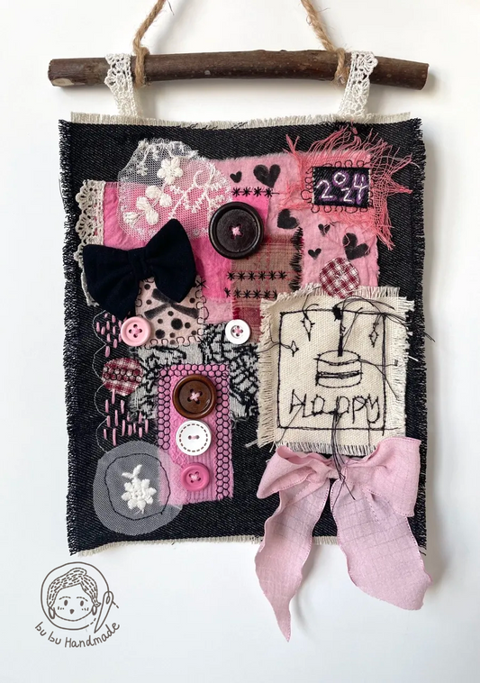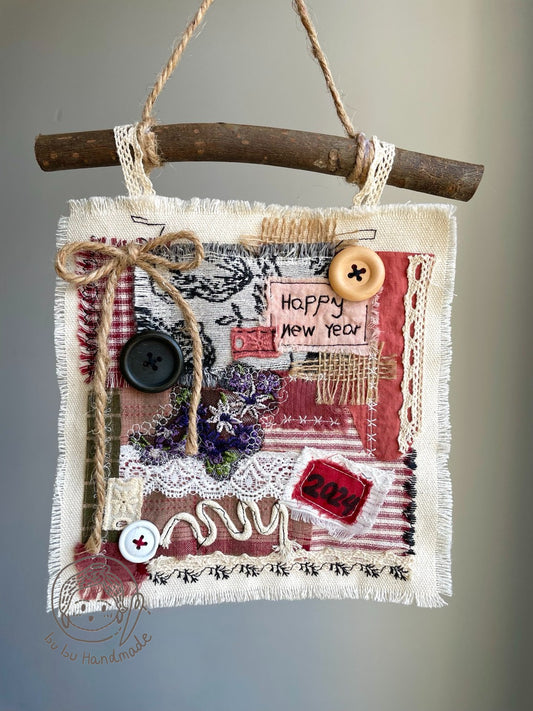Happy New Year 丨Patchwork Hanging Picture, Fabric Art Collage