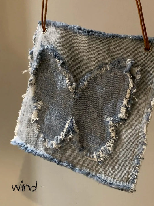 Scrawled Butterfly丨Handmade Stitched Denim CrossbodyBag