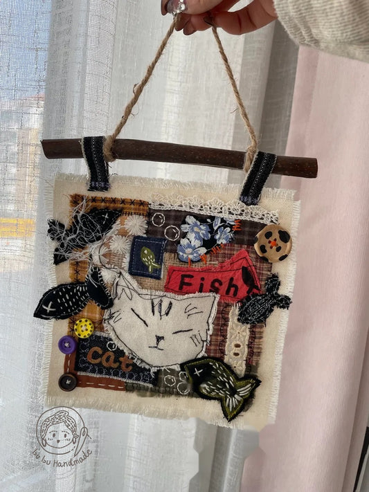 Kitten Pocket丨Patchwork Hanging Picture, Fabric Art Collage